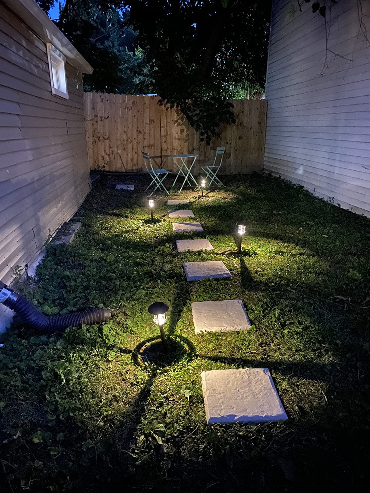- MADE OF Plastic + Resin – Both the stepping stones and ground stakes are made of Resin. Resin is a more durable type of plastic that is made for outdoor use and is able to withstand rain, hail, salt, UV rays, and cold weather without pitting, cracking, or breaking.